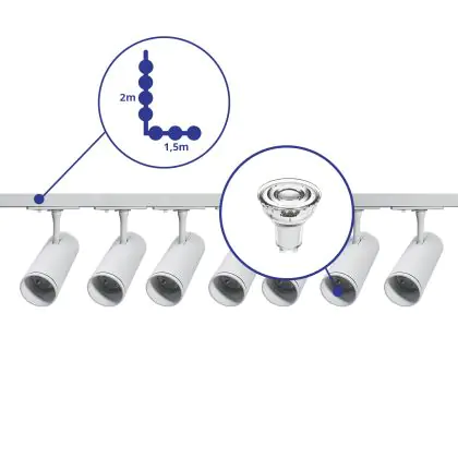 | Manufacturer Name | Complete L shaped 1-Phase Track Set White incl. 7x Spot fixture + GU10 2700K 3W Dim – 1.5 x 2 meters | |