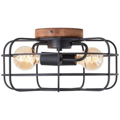 Brilliant Gwen Ceiling Light Metal Wood Black | 400mm - Suitable for 2x E27