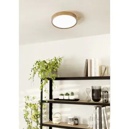 Eglo Ceiling Light Musurita Steel Wood White 14.6W 1600lm - 830 Warm White | IP20