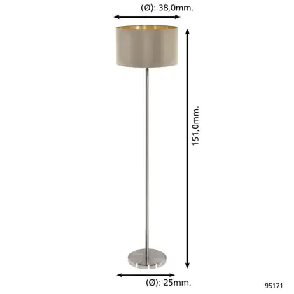 Eglo Floor Lamp Maserlo Steel Satin Nickel | Suitable for E27