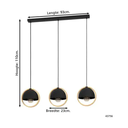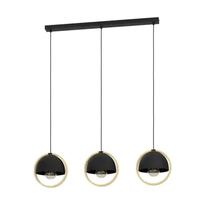 Eglo Pendant Callow Steel Wood Black Brown | IP20 - Suitable for 3x E27