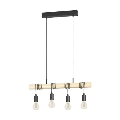 Eglo Pendant Townshend Steel Wood Black Brown | IP20 - Suitable for 4x E27