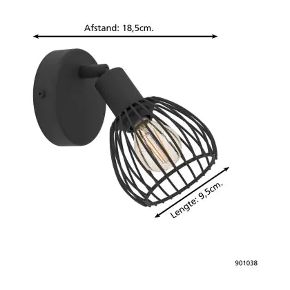 Eglo Wall Light Sonni Steel Black | IP20 - Suitable for 1x E14
