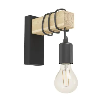 Eglo Wall Light Townshend Steel Wood Black Brown | IP20 - Suitable for 1x E27