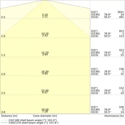 Colour temperature (Kelvin) | 3000 Warm White |