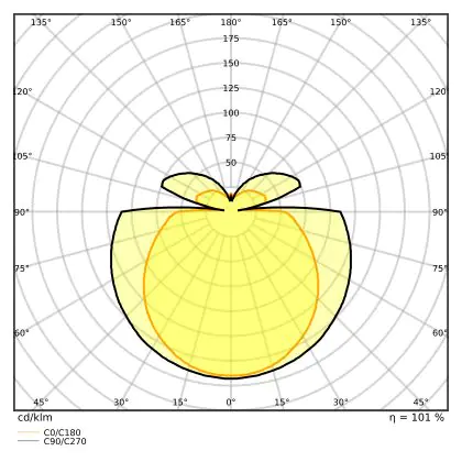 The Luminous Efficacy (lm/W) indicates how efficiently a light source uses energy. We divide the number of lumens by the wattage. The higher the number, the more efficient a product is in terms of energy consumption. LED lighting has a considerably higher lumen/Watt ratio than conventional lighting.