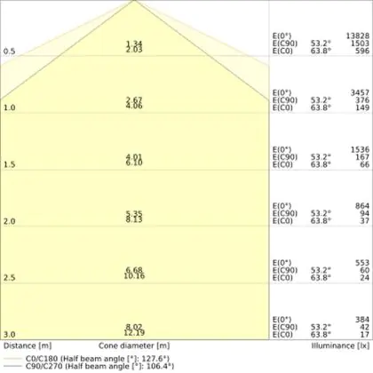 ![]() The colour code is a combination of colour rendering (CRI) and light colour (Kelvin). The first number indicates the colour rendering (1 = very poor colour rendering, 9 = maximum colour fastness). The second and third number contains the light colour. Example: the colour code 830 consists of good colour rendering (8) and warm white light (3000K). |