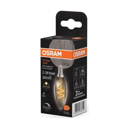 Osram Vintage 1906 LED Classic Slim E14 Candle Filament Clear 3.1W 300lm - 927 Extra Warm White | Best Colour Rendering - Dimmable - Replaces 25W