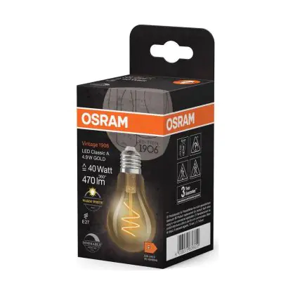 | Manufacturer Name | Vintage 1906 LED CLASSIC A,B,P SLIM FILAMENT DIMMABLE 4.9W 927 Gold E2 | |