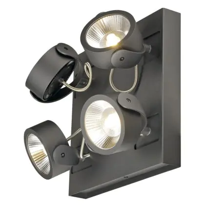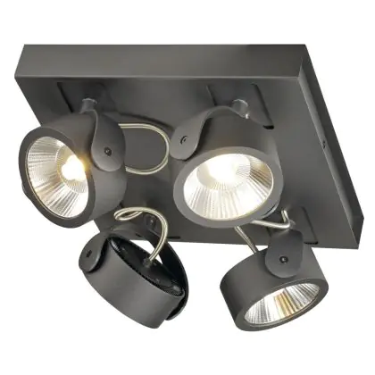 SLV Kalu Quadruple Wall and Ceiling Light Aluminium Black Square 60W 4000lm - 830 Warm White | Dimmable